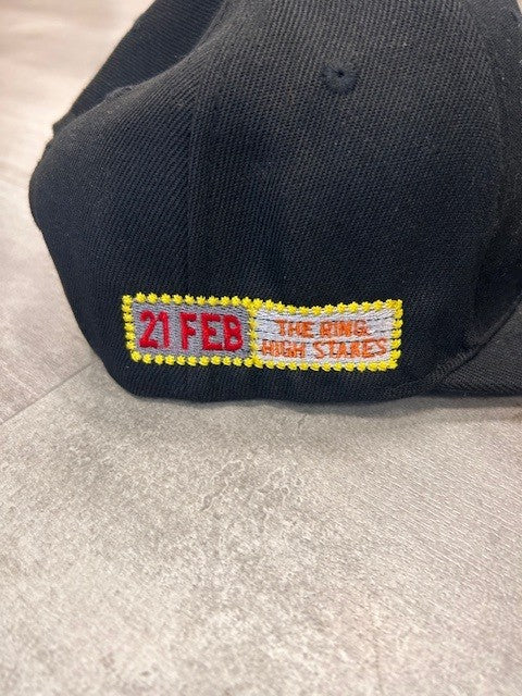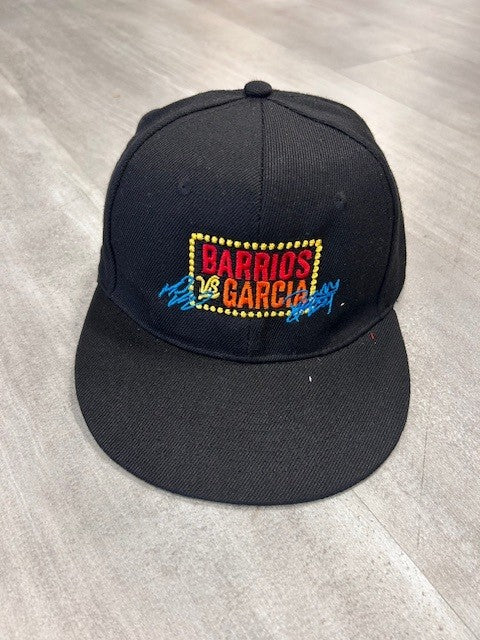 OFFICIAL Barrios vs Garcia OTTO premium fabric, snapback, black relax fit hat with four-color bold event graphics, embroidered side patch, side embellishments, classic fit, durable snap closure.