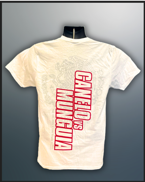 The OFFICIAL Canelo vs Munguia White Event T-Shirt, 100% Cotton, With Front and Back Graphics